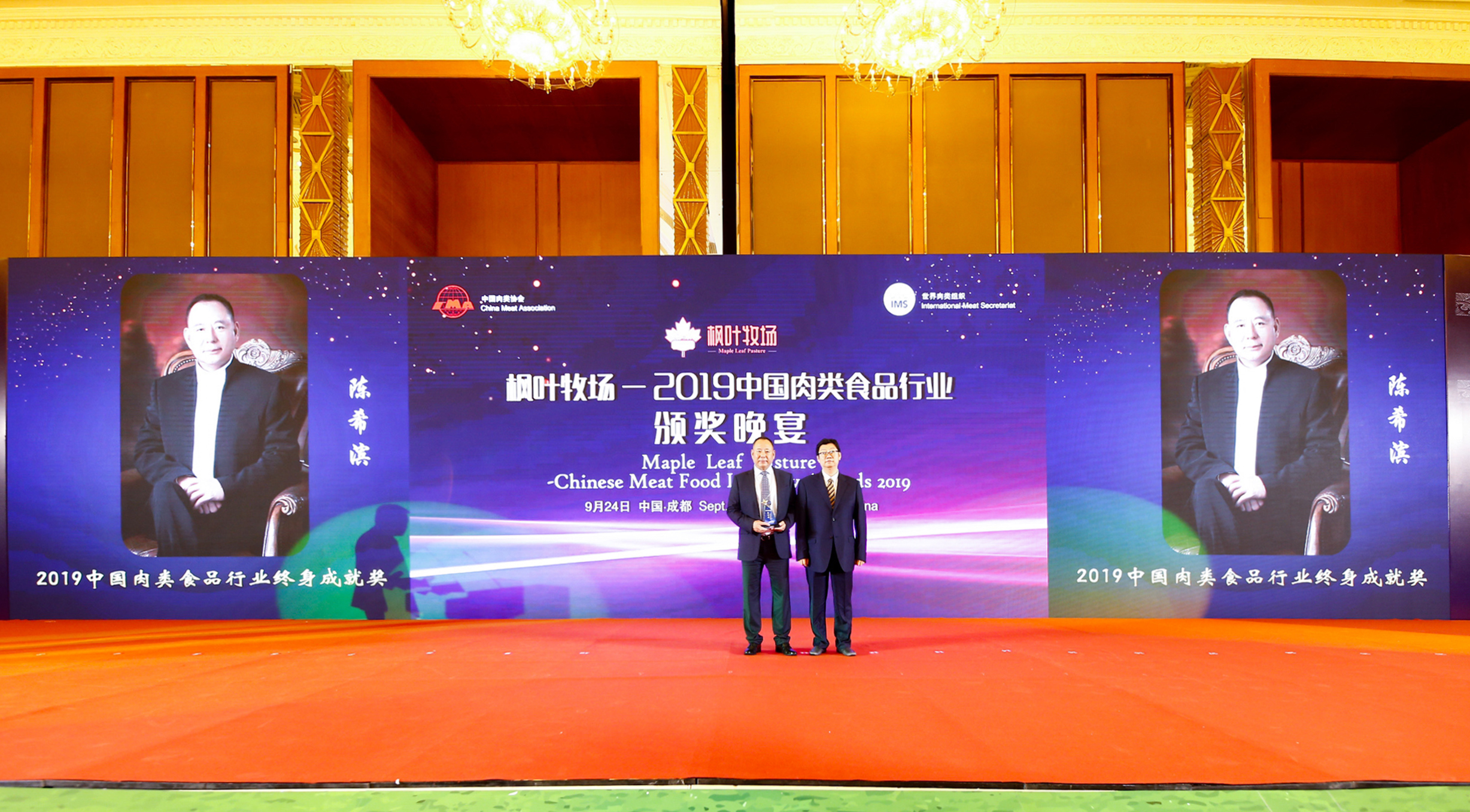 2019年9月24日,大莊園集團董事長陳希濱先生榮膺中國肉類食品行業最高個人獎項:“終身成就獎”,成為中國牛羊肉行業獲此獎項的第一人。
