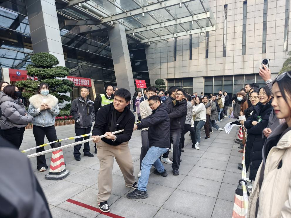 “加油!加油!”一聲聲吶喊助威響徹成都三峽大廈,12月31日,三峽高科成都分公司組織參加2025年集團公司四川區域迎新年拔河比賽。